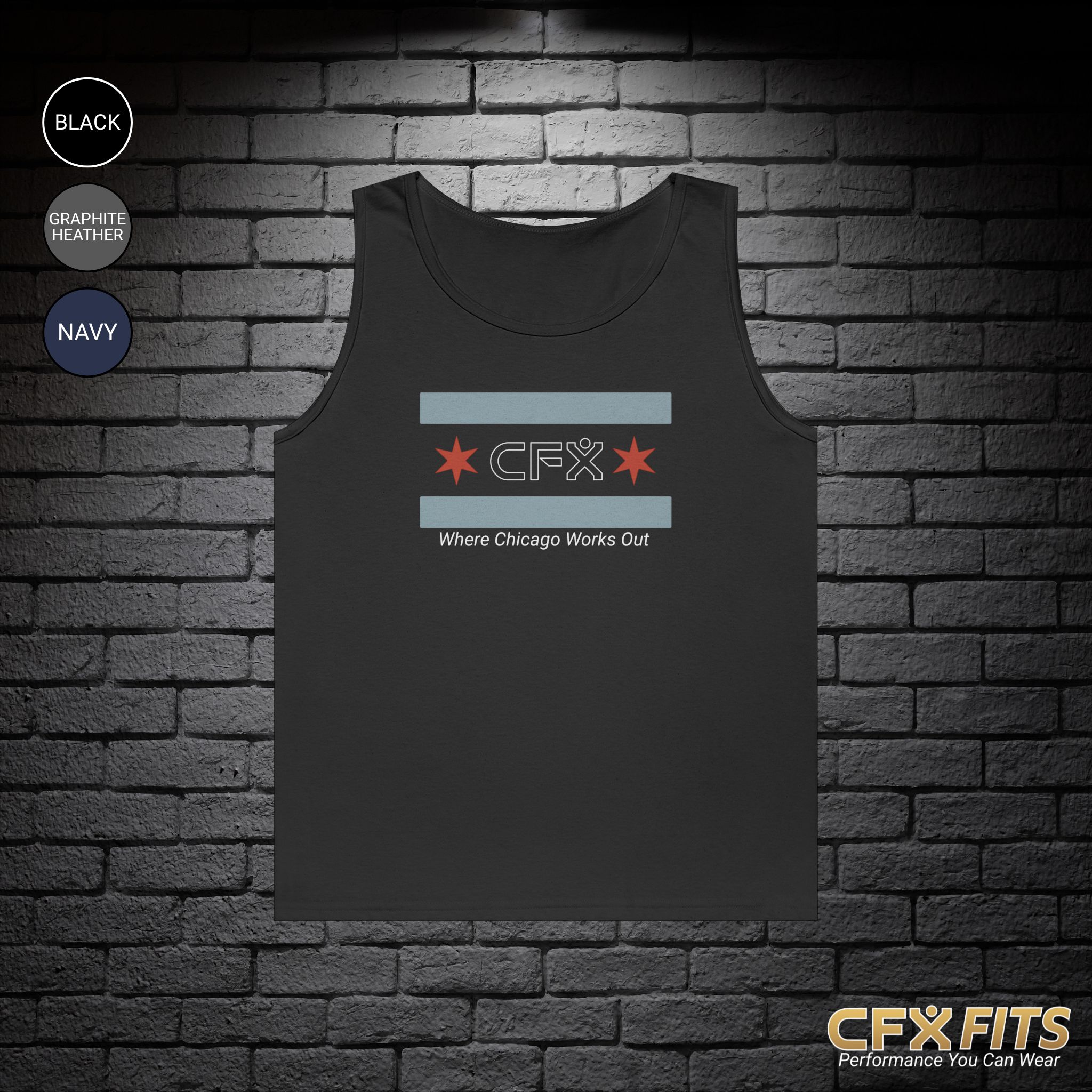 The Chicago flag is more than a symbol. It represents resilience, grit, and pride in the work. This Chicago Flag CFX tank top brings that meaning into the gym with a bold yet clean design that speaks for itself.