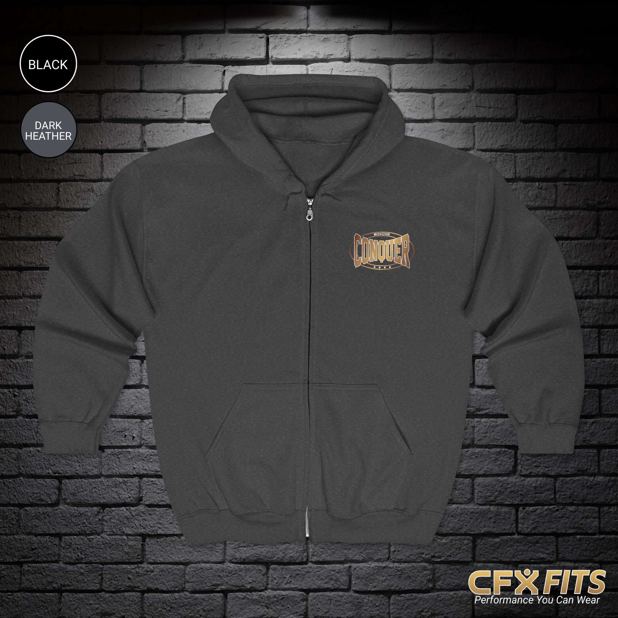 The Conquer Boxing Zip-Up Hoodie is designed for fighters who value versatility, comfort, and function both inside and outside the gym. Built on a premium Gildan zip-up hoodie, this piece delivers warmth, durability, and easy layering for training sessions, recovery days, and everyday wear.
