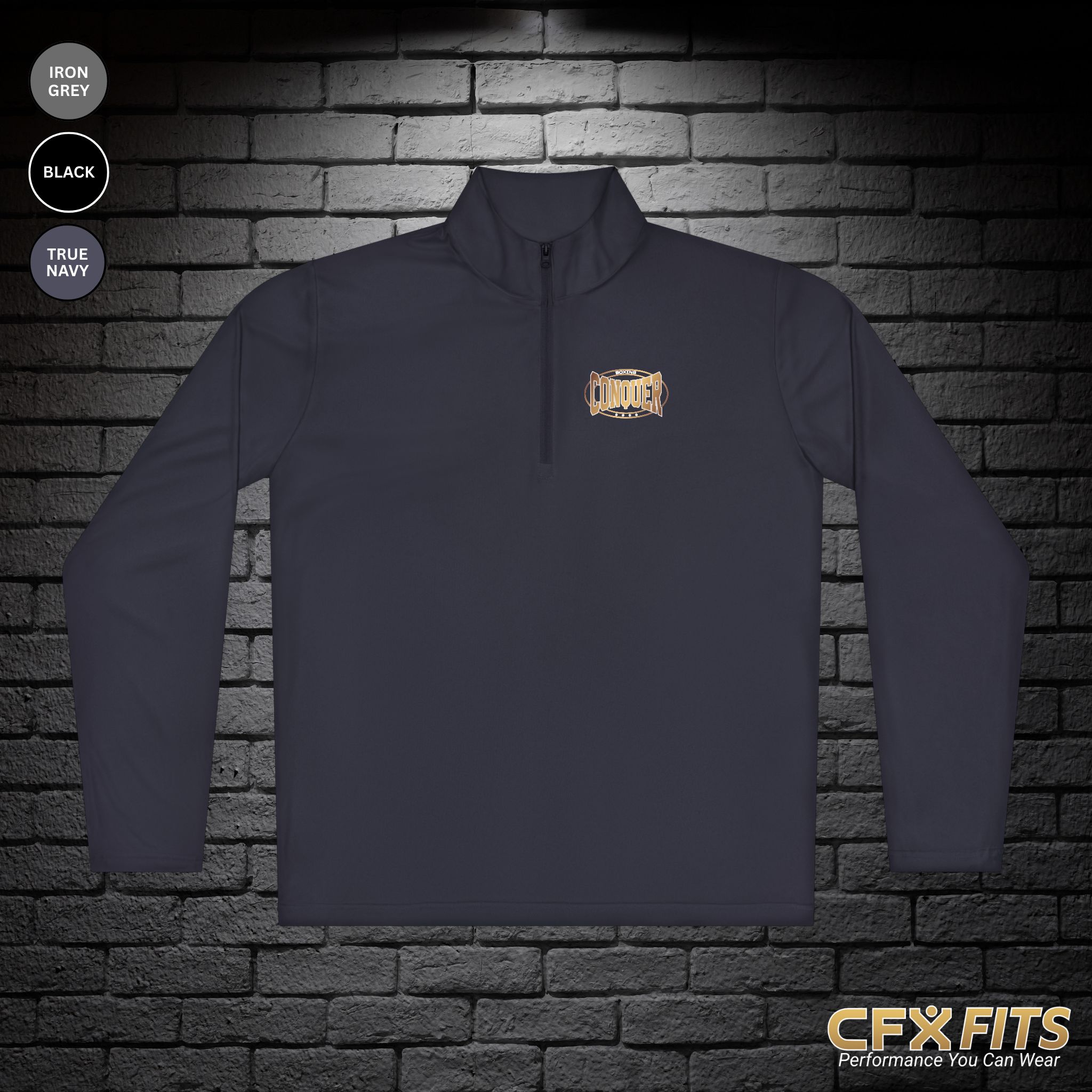 Finished with a subtle Conquer Boxing chest logo, this quarter-zip represents discipline, grit, and consistency. Whether you’re warming up, coaching, or heading out after a session, it delivers a clean athletic look that fits the Conquer Boxing lifestyle.