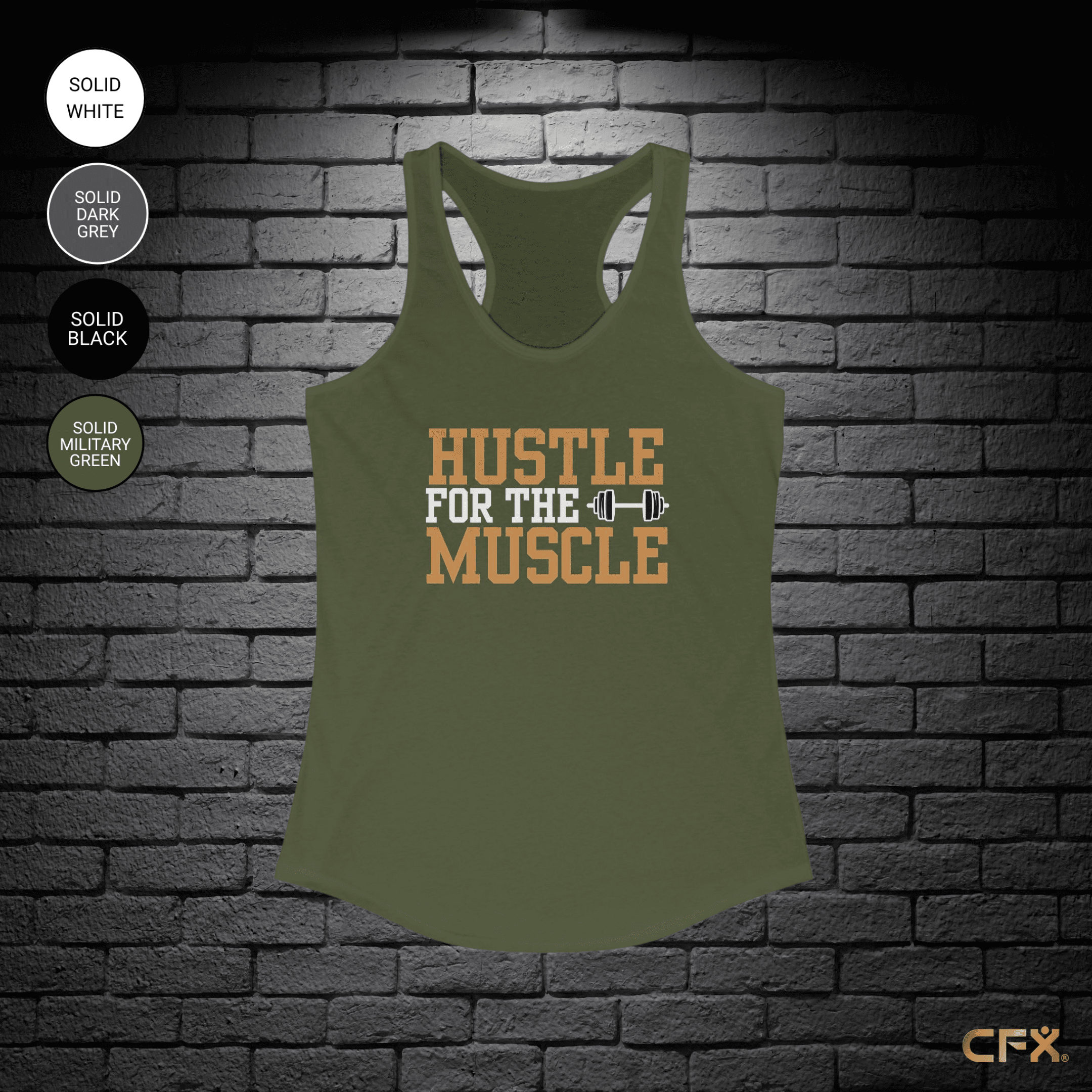 This racerback tank features a flattering athletic cut and the energy to match your grind. “Hustle for the Muscle” isn’t just a saying—it’s your routine.