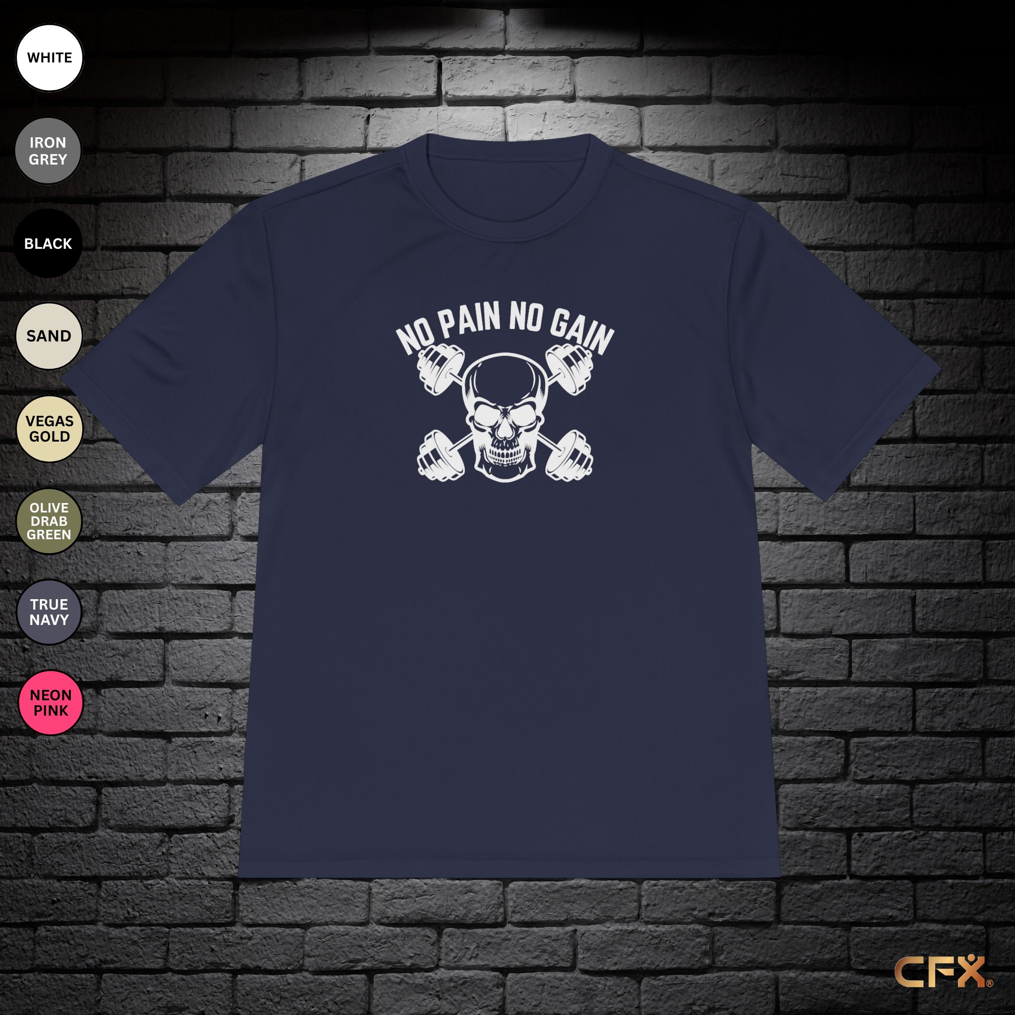 Features the No Pain No Gain design for a signature finish