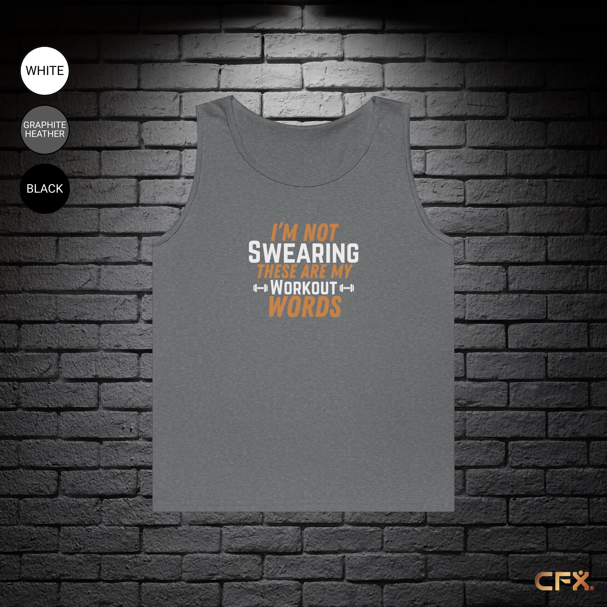 This unisex tank is lightweight, breathable, and perfect for lifting, running, or letting off steam. And no, you’re not swearing—those are just your workout words.